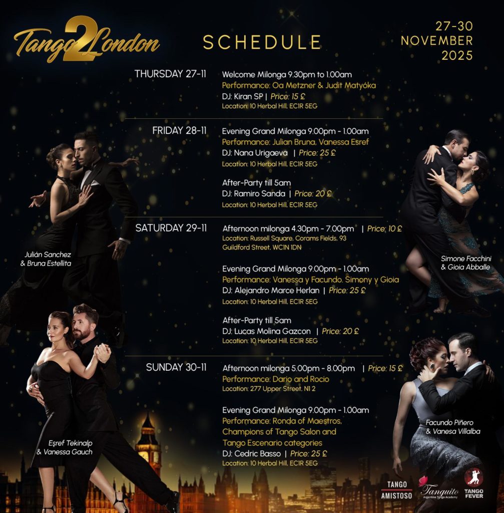 Embrace the rhythm, passion, and elegance of tango at Tango2London — a festival presented in collaboration with the world-renowned Tango2Istanbul. For the second time, London becomes the stage for an extraordinary gathering of dancers, maestros, international DJs, and tango lovers from every corner of the globe.